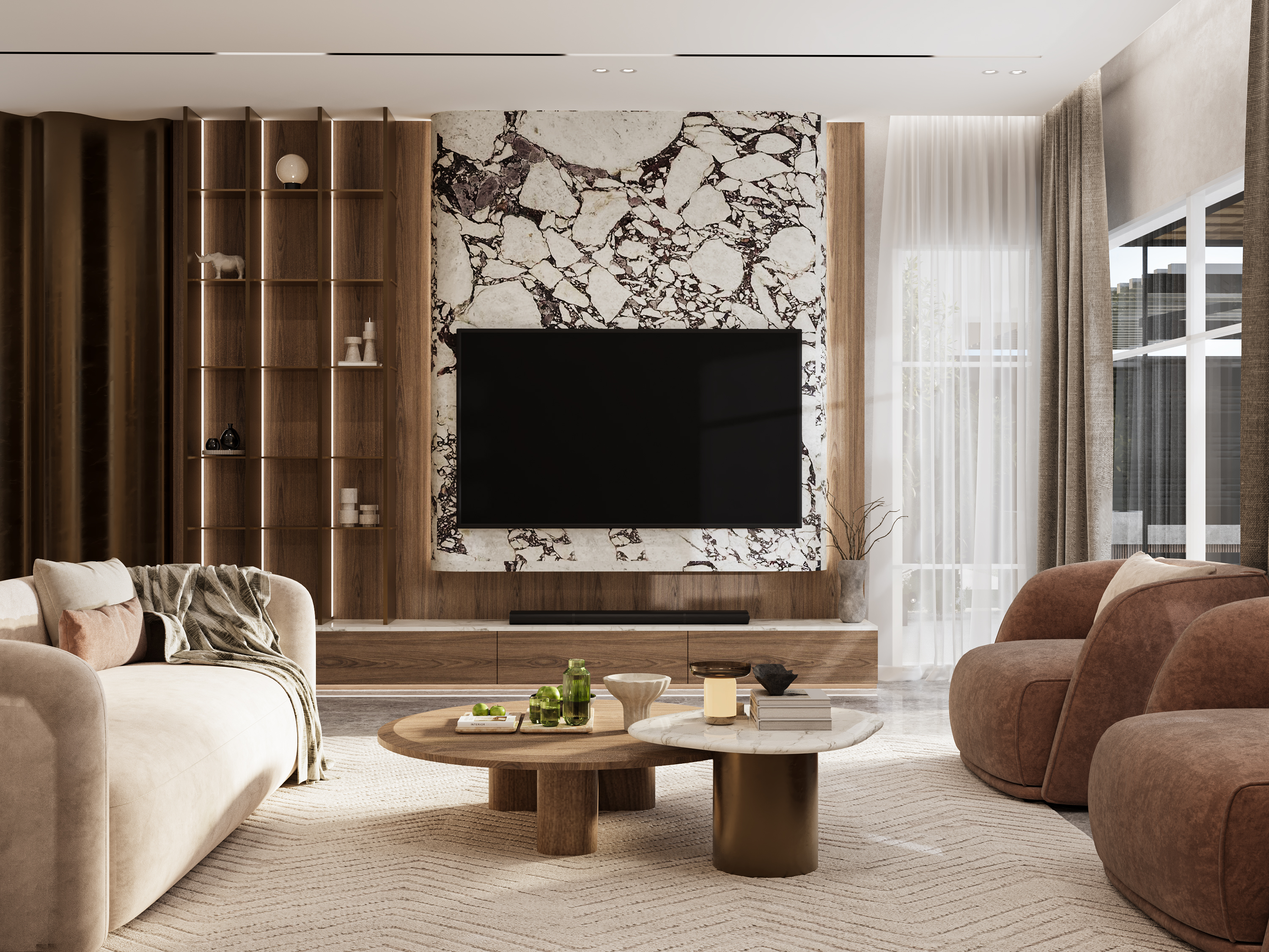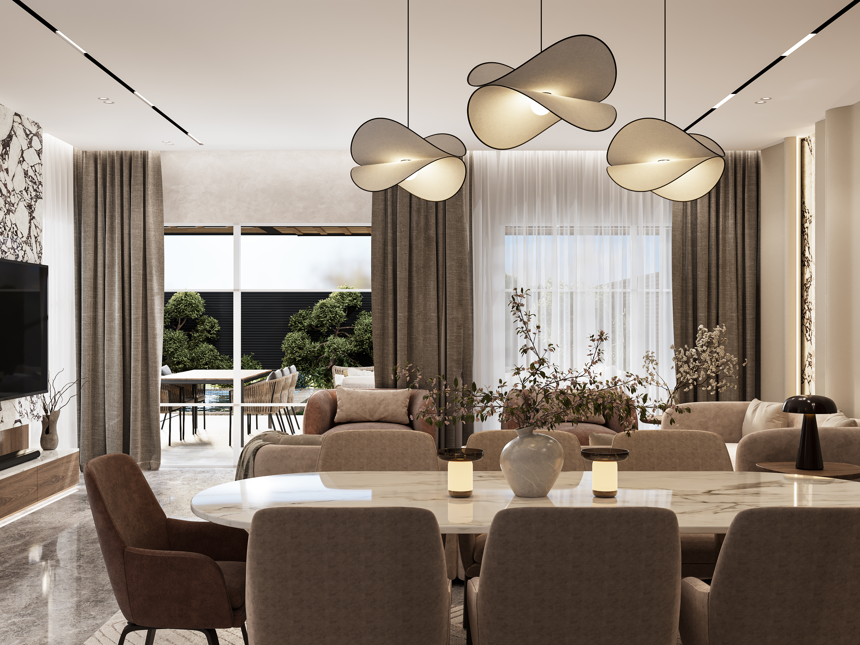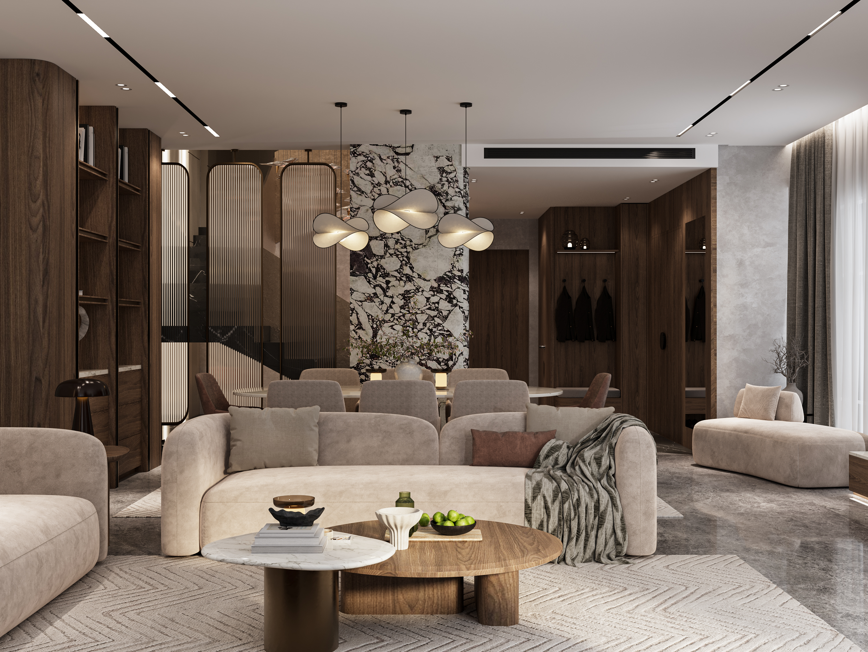 A contemporary interior design project for a private villa in Palm Hills, New Cairo, showcasing clean lines, warm textures, and a modern luxury feel. The design emphasizes open spaces, natural light, and custom-made elements that enhance both comfort and functionality. Each room is thoughtfully curated to reflect an elegant, modern lifestyle while maintaining a welcoming and timeless atmosphere.