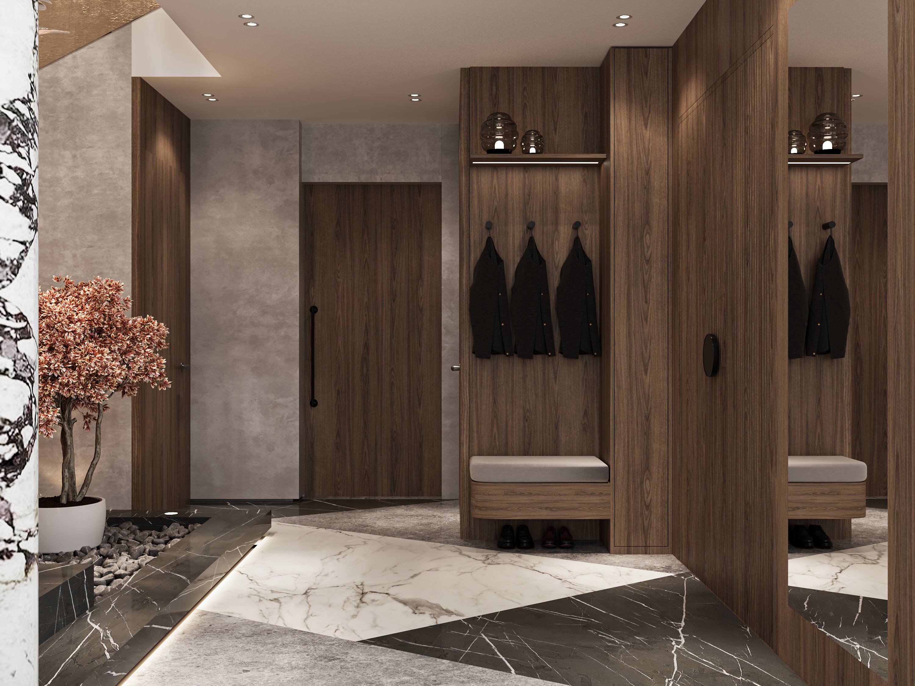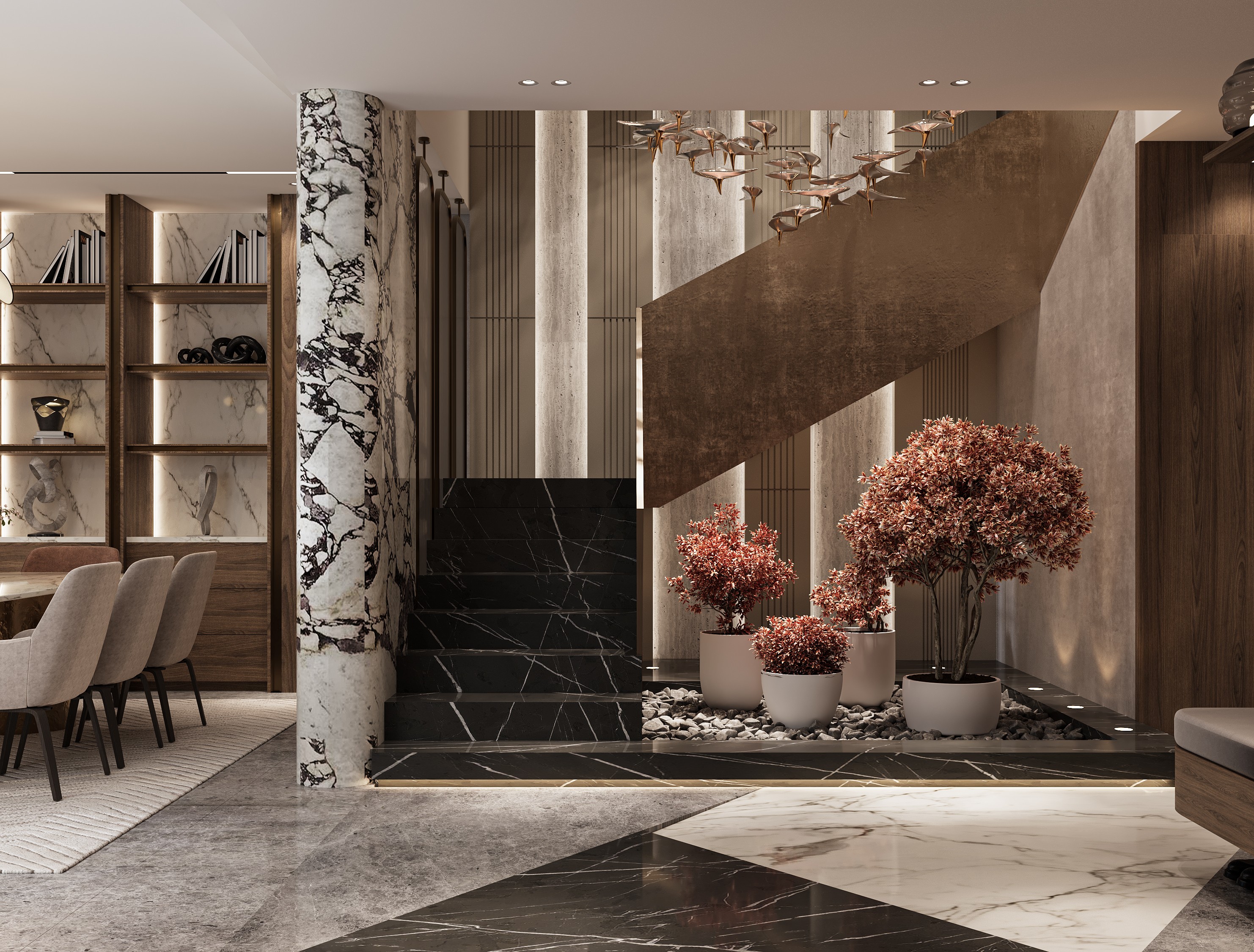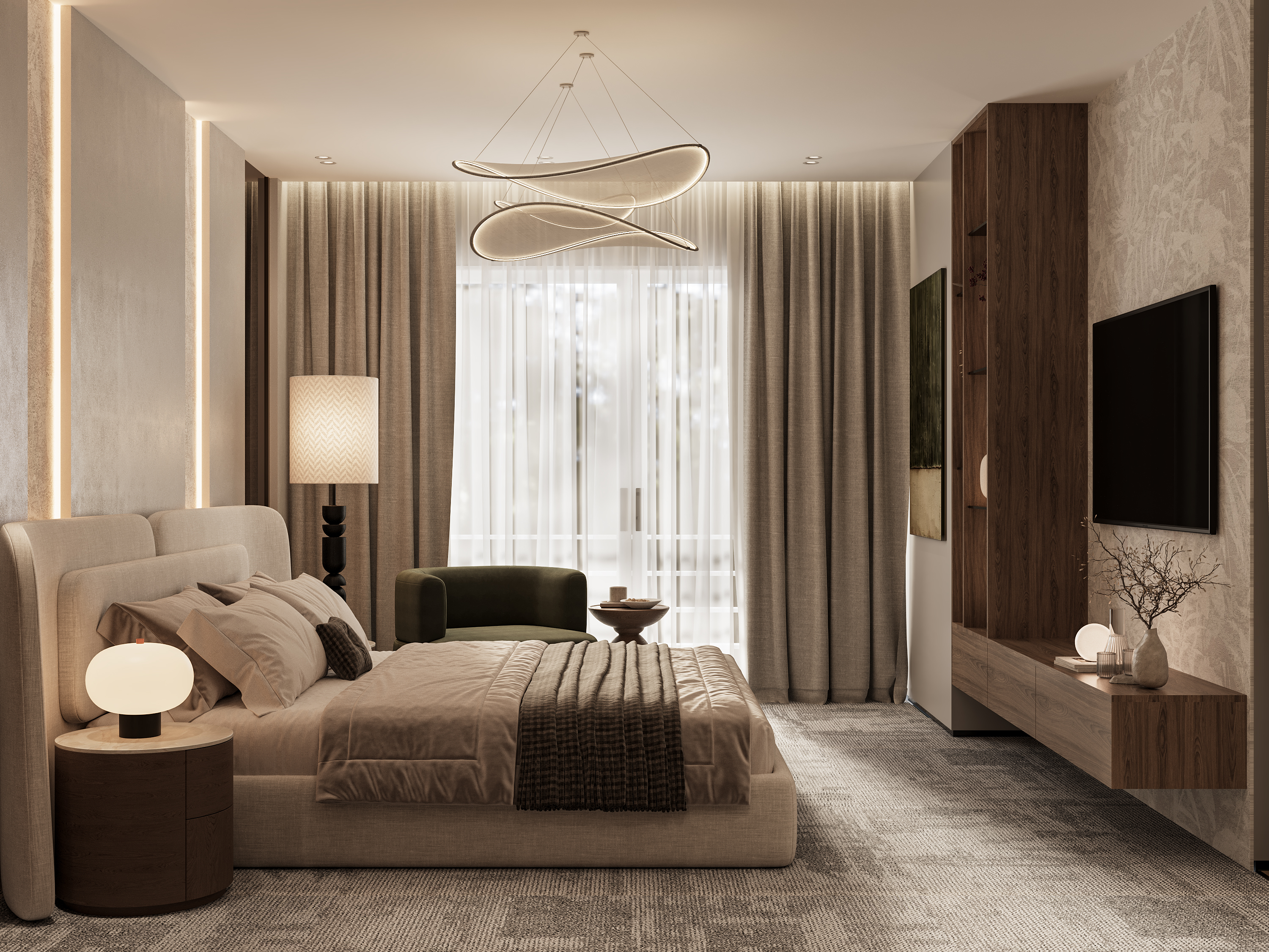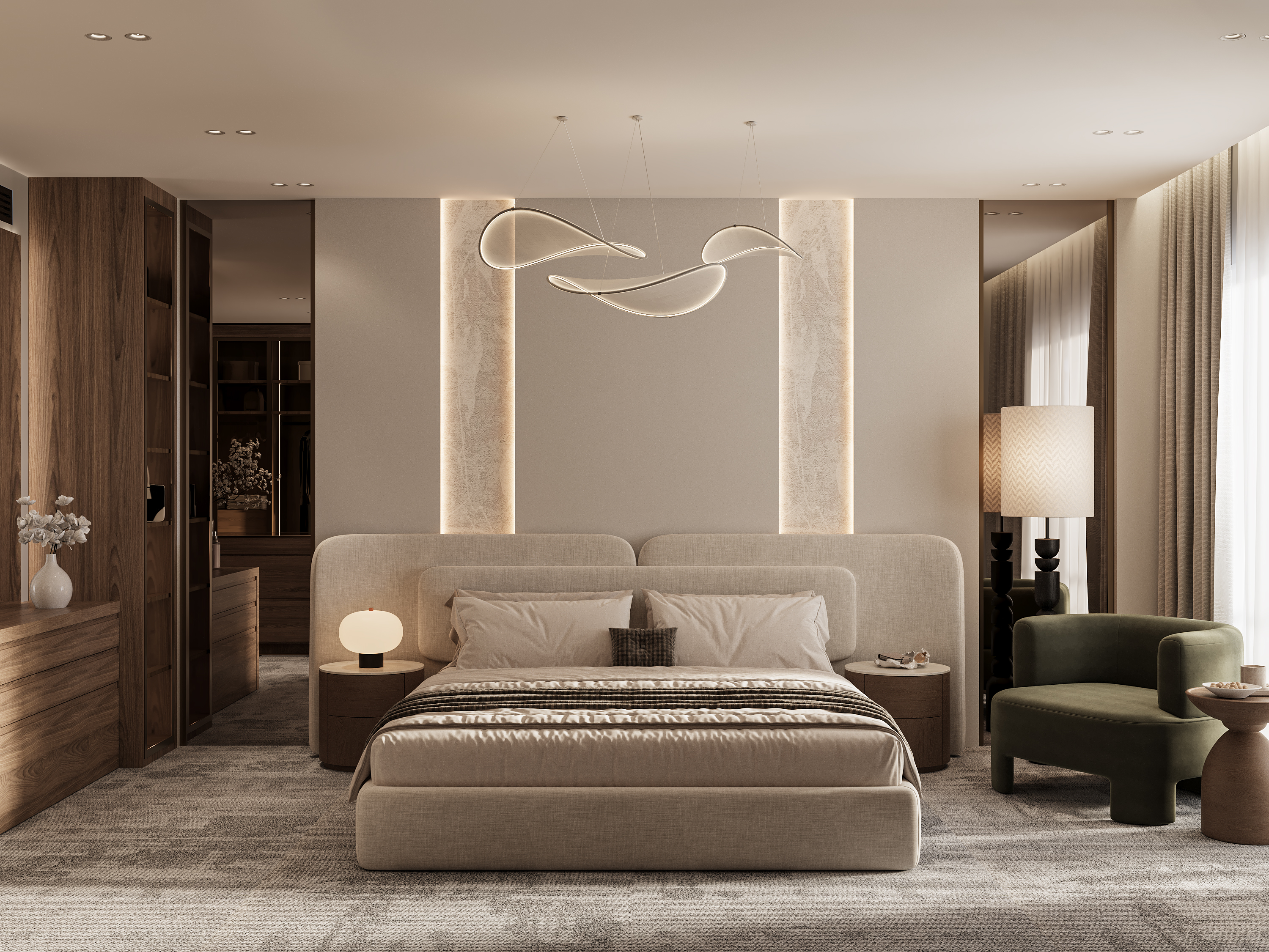 A contemporary interior design project for a private villa in Palm Hills, New Cairo, showcasing clean lines, warm textures, and a modern luxury feel. The design emphasizes open spaces, natural light, and custom-made elements that enhance both comfort and functionality. Each room is thoughtfully curated to reflect an elegant, modern lifestyle while maintaining a welcoming and timeless atmosphere.