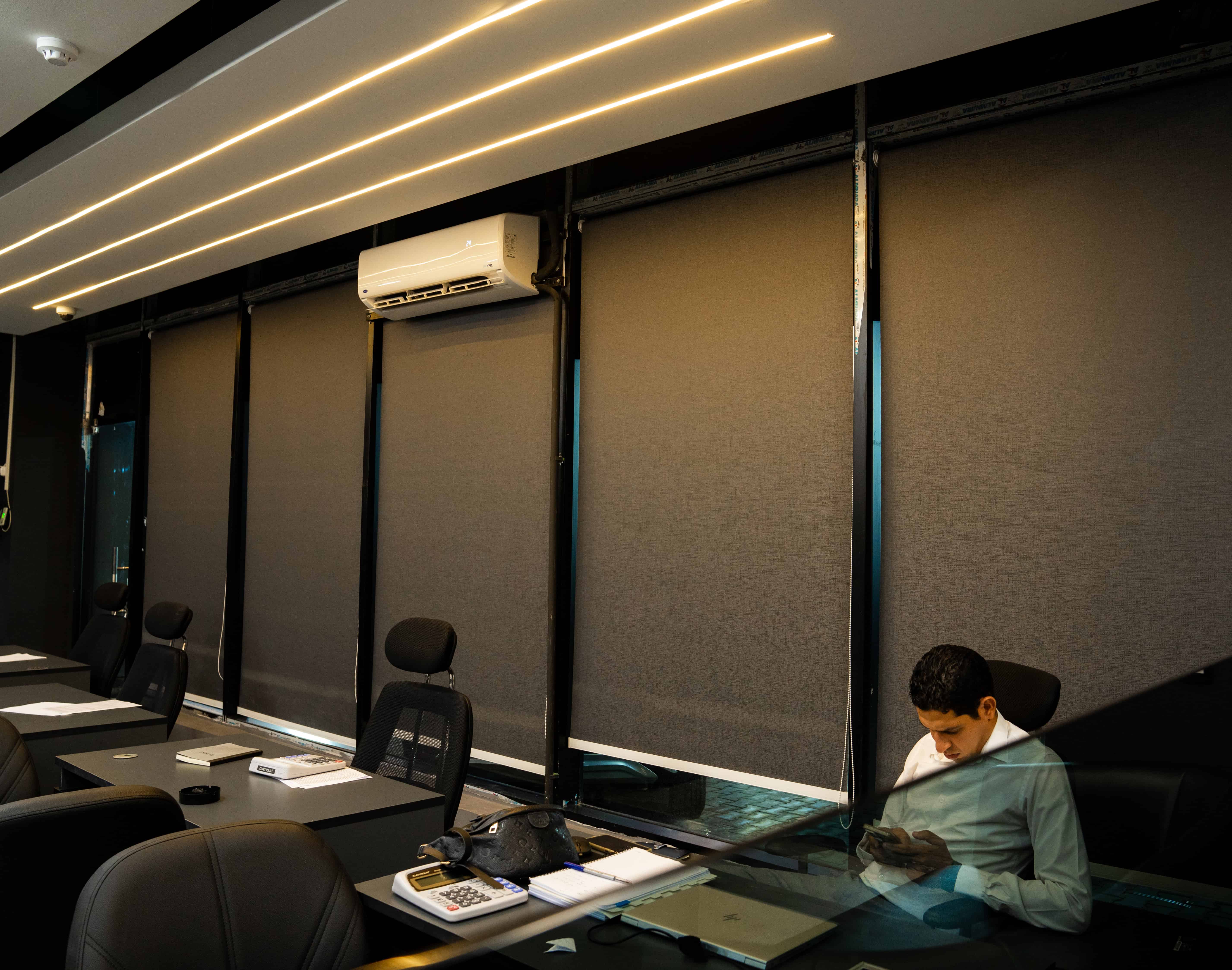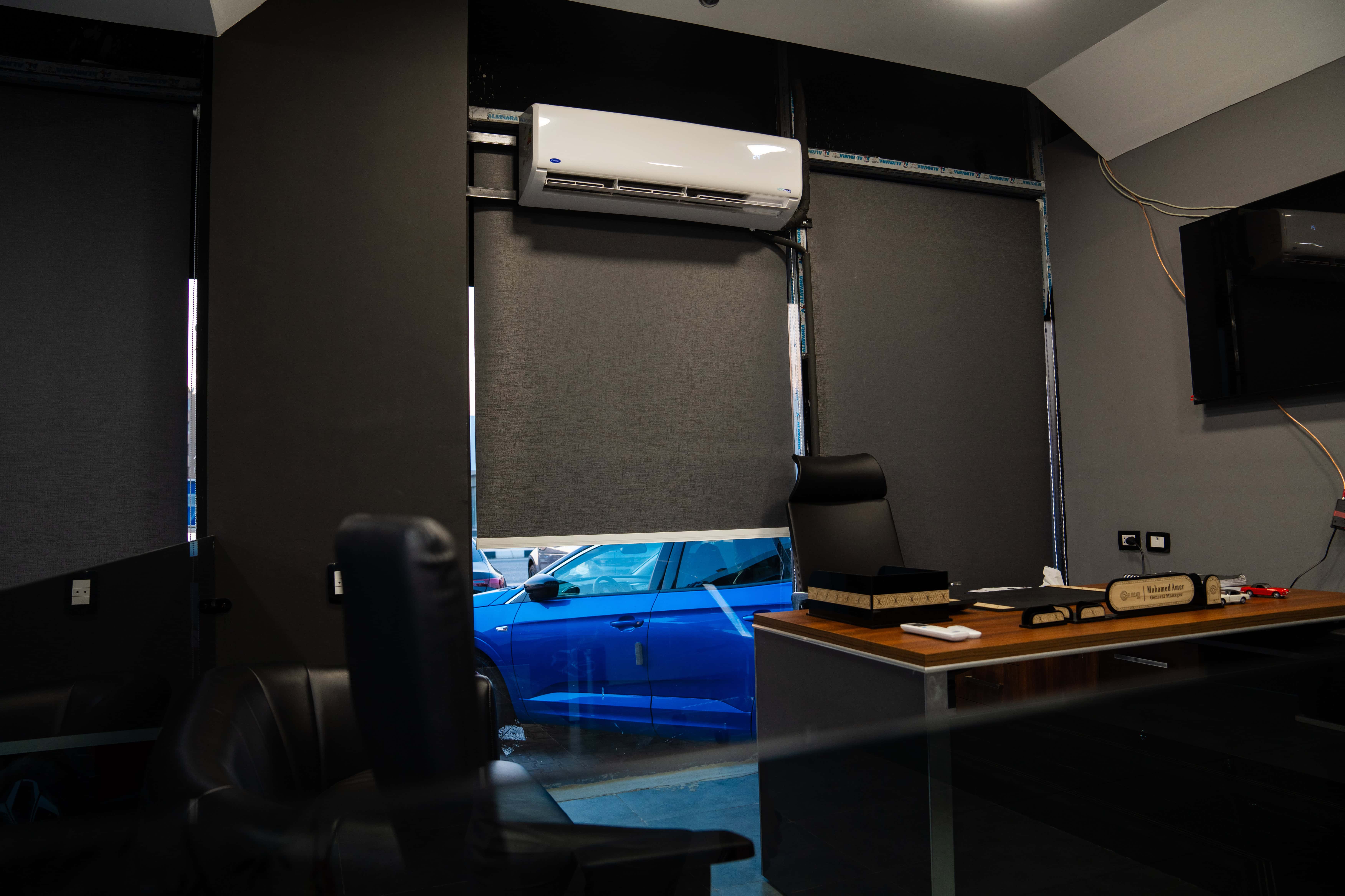 One of exceptional installation projects Using Blackout Rolling blinds at Al Togary Auto Showroom, designed to serve as the perfect solution for corporates.